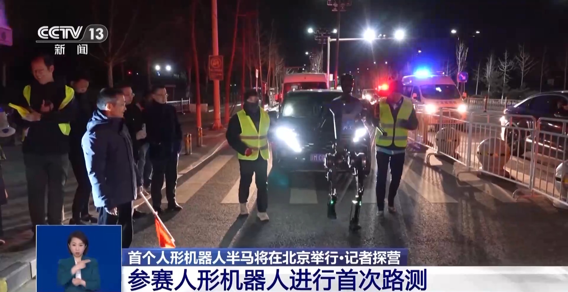 3月28日晚,在北京亦莊,報(bào)名參加北京亦莊半程馬拉松的機(jī)器人進(jìn)行了第一次實(shí)地路面測(cè)試。