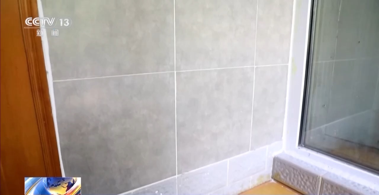 經(jīng)過現(xiàn)場查看,瓷磚掉落的部位因?yàn)槟昃檬抟呀?jīng)空鼓了,隨時可能全部掉下來。趙靜超決定讓工人把陽臺的瓷磚全部敲掉重新貼。第二天一早記者再次來到聞阿姨家時,這面墻已經(jīng)煥然一新。