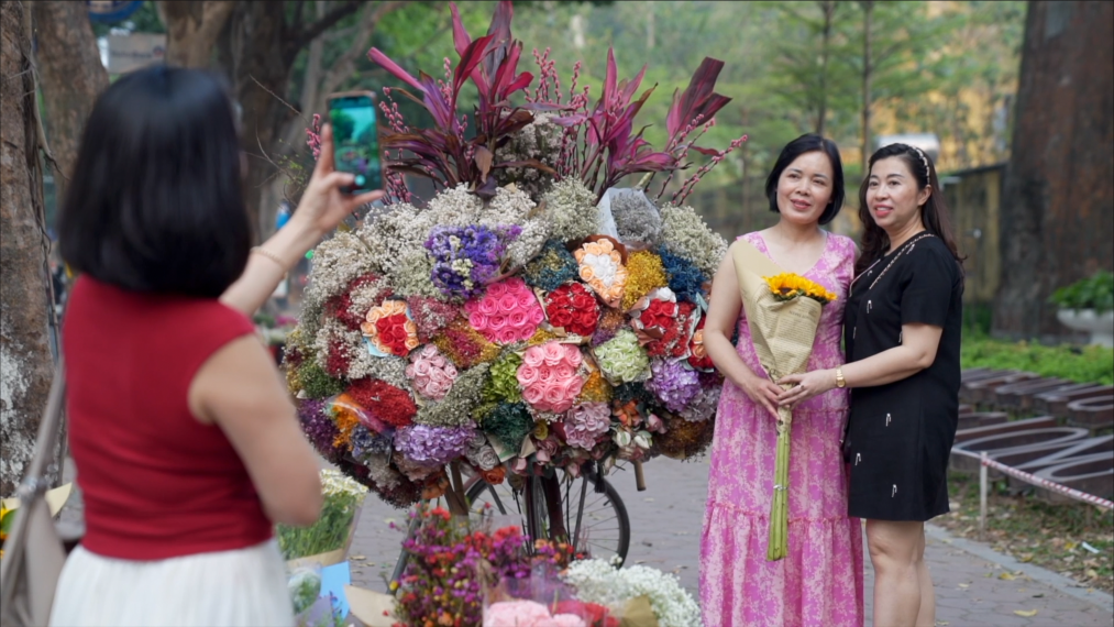 越南首都河內(nèi)是一座愛(ài)花的城市,以自行車或摩托車為貨架的“鮮花巴士”遍布大街小巷,成為這座城市獨(dú)特的風(fēng)景線。