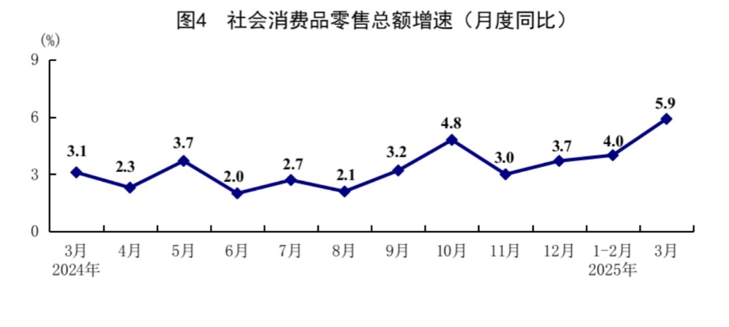 去年9月26日,中央政治局會議果斷部署了一攬子增量政策,對穩(wěn)定經(jīng)濟發(fā)揮了關(guān)鍵作用。今年我國宏觀政策更加積極有為,前期出臺的宏觀政策和持續(xù)擴容加碼的增量政策疊加發(fā)力,有效擴大了需求、促進了生產(chǎn)、激發(fā)了活力、增強了信心。3月份,社會消費品零售總額同比增長5.9%,增速創(chuàng)一年來新高。