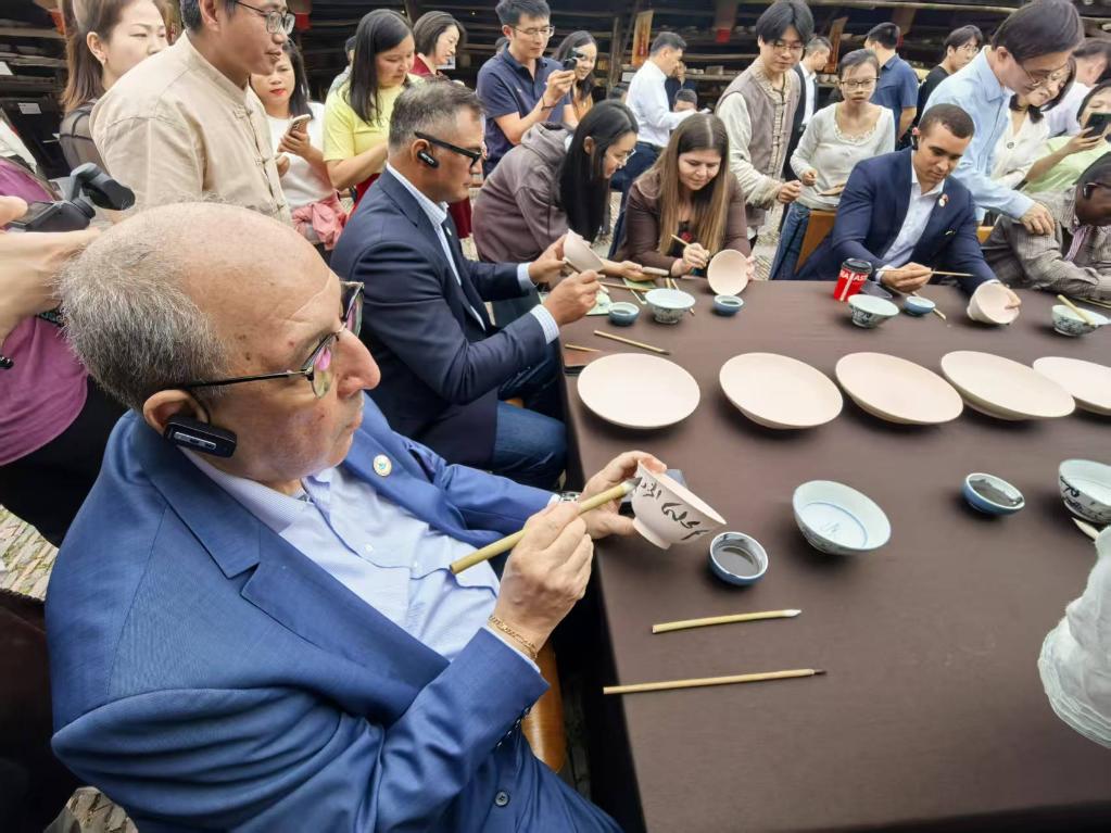 三面青山一面水,一城瓷器半城窯。在聞名遐邇的江西景德鎮(zhèn),使節(jié)們聆聽千年瓷都故事,感受陶瓷文化承古啟新的時代魅力。