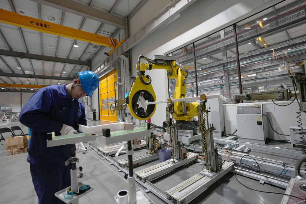 2月26日,在哈爾濱電機(jī)廠有限責(zé)任公司線圈分廠智能制造車間,工人與智能設(shè)備在進(jìn)行協(xié)同加工生產(chǎn)作業(yè)。新華社記者 王松 攝