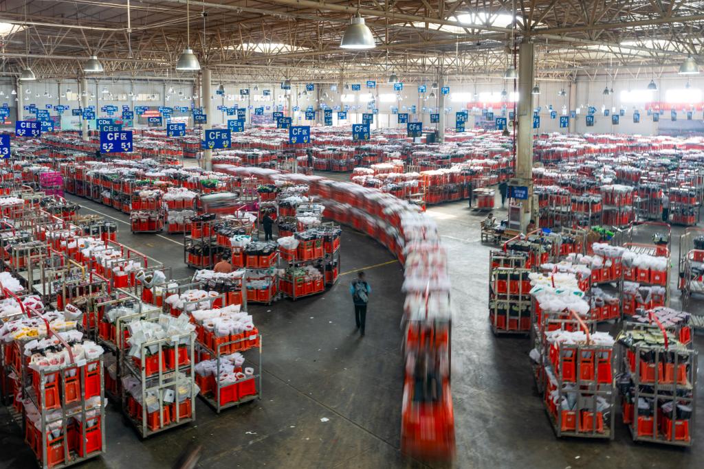 1月22日,臺車在昆明國際花卉拍賣交易中心內(nèi)轉(zhuǎn)運鮮花。新華社記者 陳欣波 攝