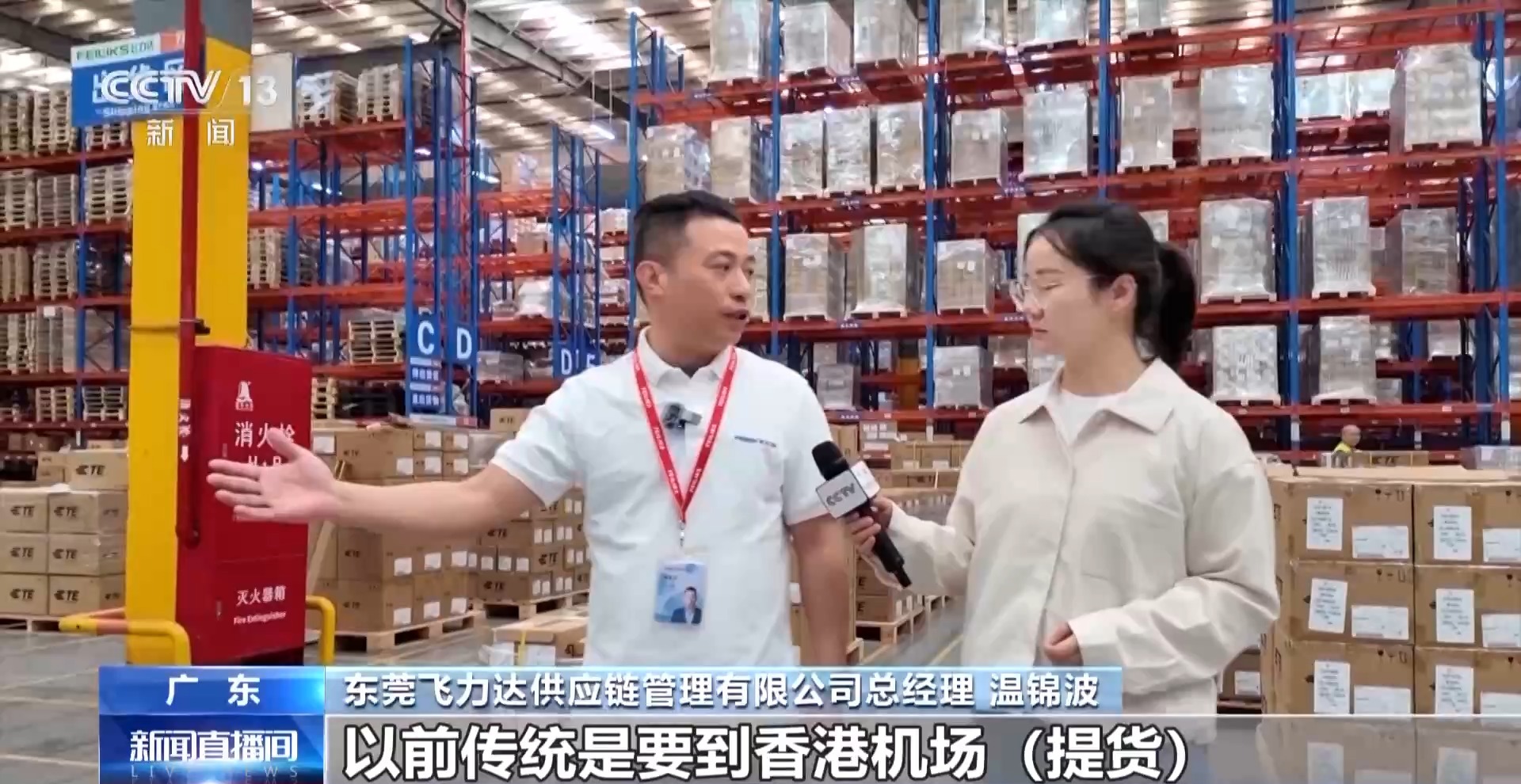 東莞飛力達供應鏈管理有限公司總經(jīng)理 溫錦波:以前傳統(tǒng)是要到香港機場提貨,現(xiàn)在不用拆包、不用申報,直接拉到空港中心,再進行一站式的進口申報。在我們家門口500米,就可以提回來倉庫,非常方便。