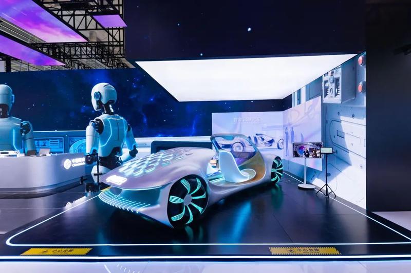 第八屆數(shù)字中國(guó)建設(shè)峰會(huì)中國(guó)移動(dòng)展區(qū)內(nèi),“智能網(wǎng)聯(lián)車”等創(chuàng)新應(yīng)用正盛裝而待。(圖片來源:福建日?qǐng)?bào))