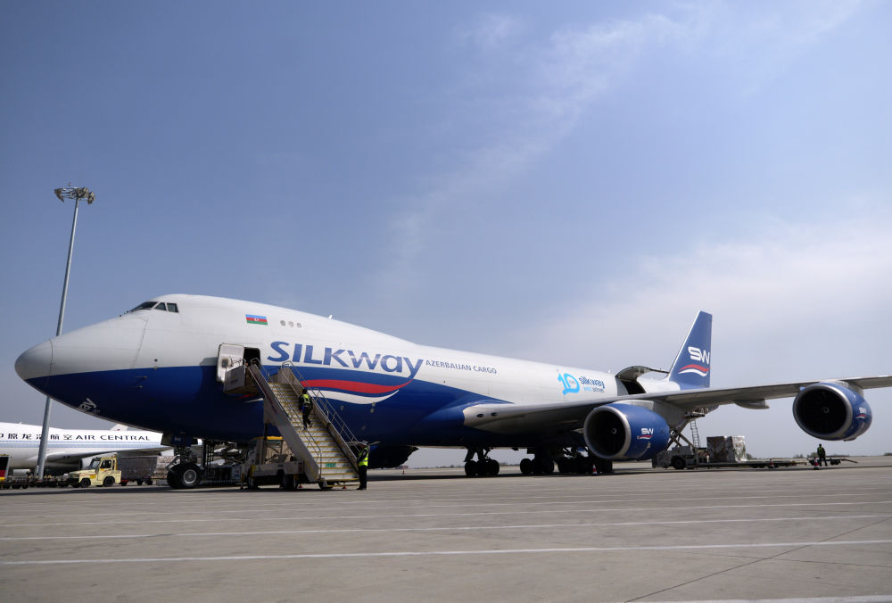 2025年4月2日,一架阿塞拜疆絲綢之路西部航空公司的貨機(jī)停靠在鄭州新鄭國際機(jī)場停機(jī)坪上。新華社記者 李嘉南 攝