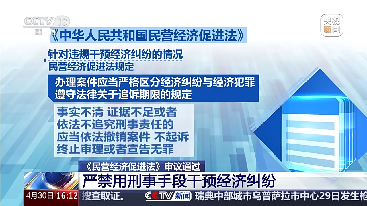 針對實(shí)踐中存在的違規(guī)干預(yù)經(jīng)濟(jì)糾紛、異地執(zhí)法等情況,民營經(jīng)濟(jì)促進(jìn)法也作出了明確規(guī)定,嚴(yán)禁用刑事手段干預(yù)經(jīng)濟(jì)糾紛,加強(qiáng)異地執(zhí)法協(xié)作。