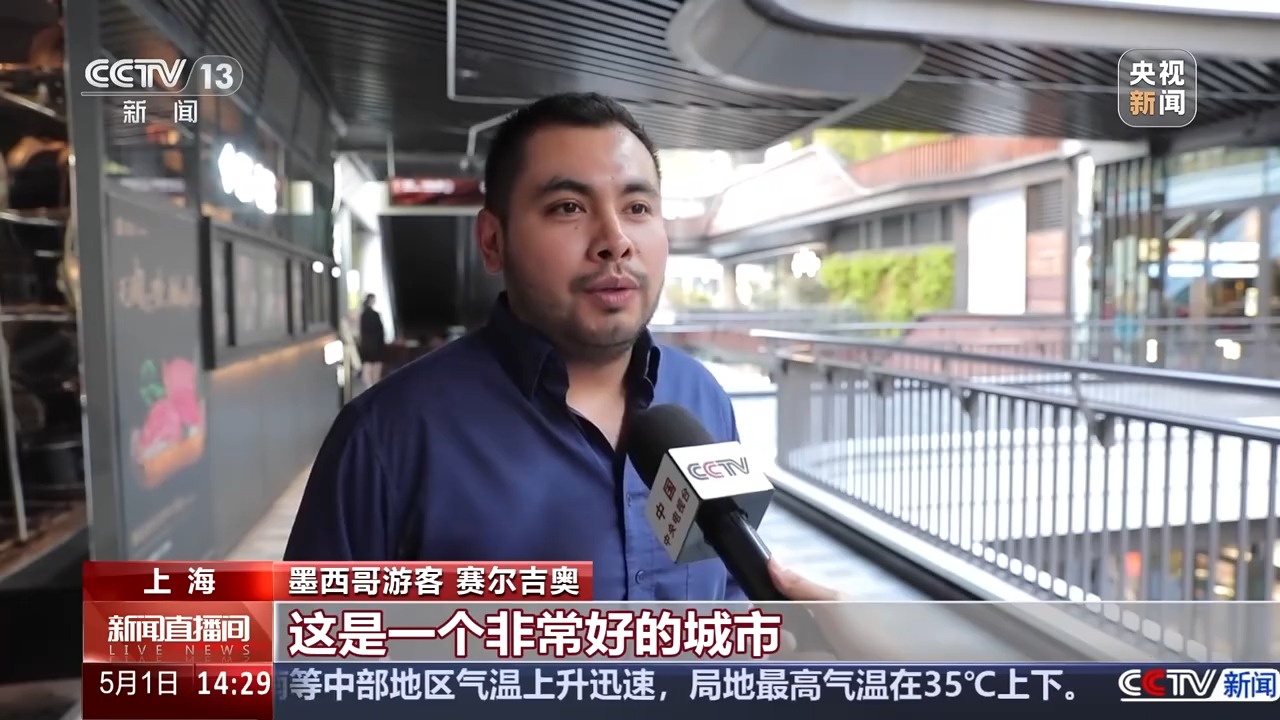 墨西哥游客 賽爾吉奧:事實(shí)上在這里你可以找到你想要的每一項(xiàng)技術(shù),你可以找到很多你想象不到的東西,所以我相信,外國(guó)人來(lái)上海購(gòu)物真的很好,這是一個(gè)非常好的城市。