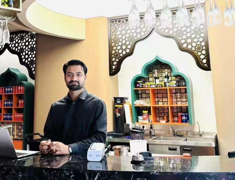 我們在中國的網(wǎng)絡(luò)平臺上都會發(fā)送電子優(yōu)惠券,也有一些排行榜把我們店放上去,所以中國消費(fèi)者就會特意過來嘗試。我們有時也有學(xué)生折扣、會員卡的活動。得益于中國的‘過境免簽’政策,我們店里有了更多的外國游客,一些外國游客可能不會用電子優(yōu)惠券,我們也有一些實體店的優(yōu)惠活動。最近中國的一些‘促消費(fèi)’活動我們也參加了,比如在美食節(jié)攤位上展示巴基斯坦美食,讓大家都嘗嘗。對于我們來說,不僅僅宣傳了我們的美食,還可以宣傳巴基斯坦文化。現(xiàn)在我們在成都剛開了一家新店,未來我們還想在西安也開一家。