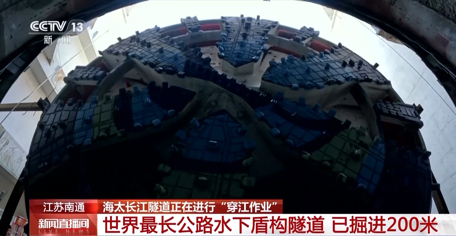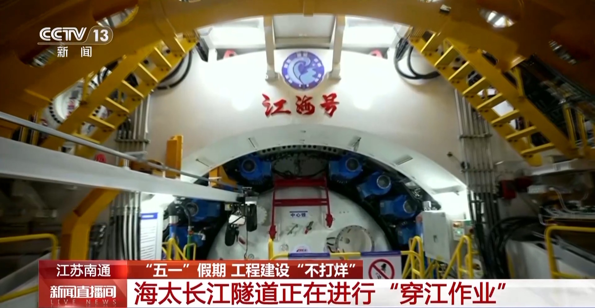 總臺(tái)記者 唐高林:江蘇南通海門區(qū)境內(nèi),靠近長(zhǎng)江的地下深處,距離地面有30多米?!拔逡弧奔倨?,這里有三百多名工人持續(xù)奮戰(zhàn)在隧道施工一線。