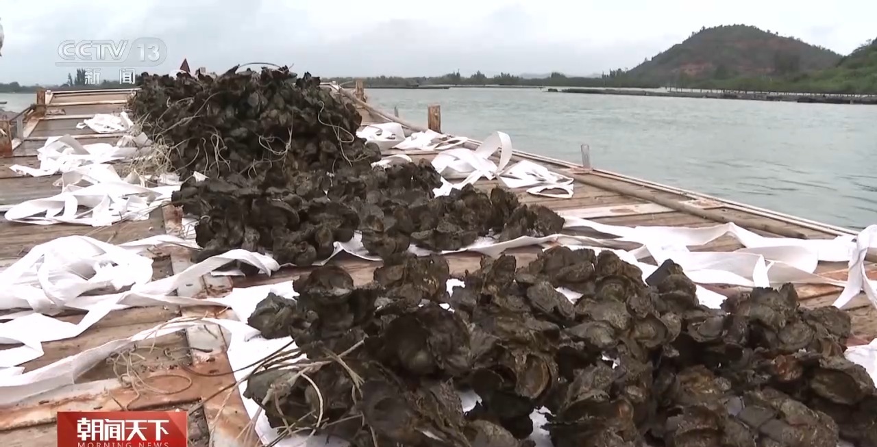 總臺(tái)央視記者 李嘯虎:在國(guó)家農(nóng)業(yè)產(chǎn)業(yè)強(qiáng)鎮(zhèn)廣東陽(yáng)西程村鎮(zhèn),“五一”期間,這里的生蠔迎來(lái)大量上市。這片占地六萬(wàn)多畝的生蠔養(yǎng)殖基地里,養(yǎng)殖戶正從水下收獲一排排成熟的生蠔,40多萬(wàn)箱新捕撈的海鮮正從這里走上百姓的節(jié)日餐桌。