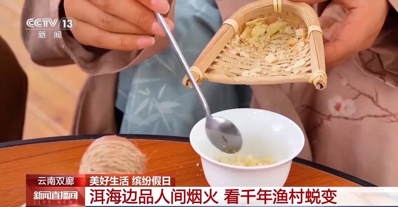 在云南大理雙廊,您既可以來一曲暢快的非遺舞蹈霸王鞭;也可以面朝洱海,品一品流傳千年的白族三道茶。本地乳扇和米花,漾濞的核桃仁,配上老紅糖水,這不是奶茶,而是“甜茶”。乳扇和米花是必選項(xiàng),其他材料隨心搭配,喝下去清甜可口。在第三道茶“回味茶”中,花椒、姜片、桂皮與茶葉同煮,看起來有些“黑暗料理”,但這是云南普洱茶最早的飲用方式,諸味俱全,回味無窮。