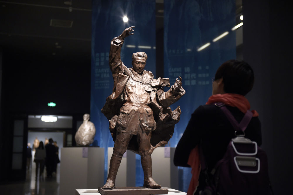 2018年4月1日,參觀者在北京的中國美術(shù)館參觀雕塑作品“冼星?!?。
