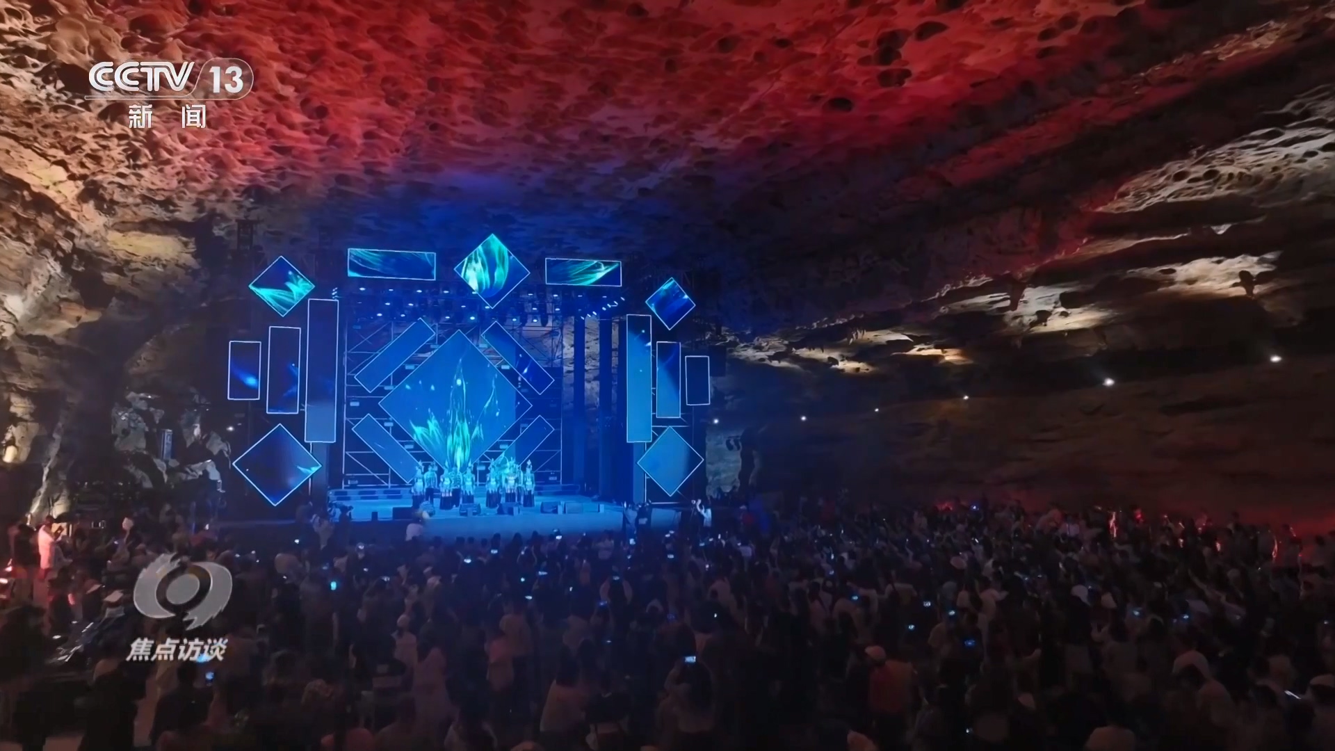 貴州綏陽縣溫泉鎮(zhèn),因溶洞喀斯特地貌資源豐富,假期里當(dāng)?shù)貙⒁魳窌?huì)“搬進(jìn)”了溶洞,專業(yè)音響系統(tǒng)被布置在鐘乳石群間,使音樂既能保留原聲質(zhì)感,又能疊加洞穴獨(dú)有的空靈回響。洞中主舞臺(tái)還引入全息投影技術(shù),將銀河系動(dòng)態(tài)光影投射在億萬年形成的洞頂巖壁上,營(yíng)造“地心音樂會(huì)”的奇幻氛圍。