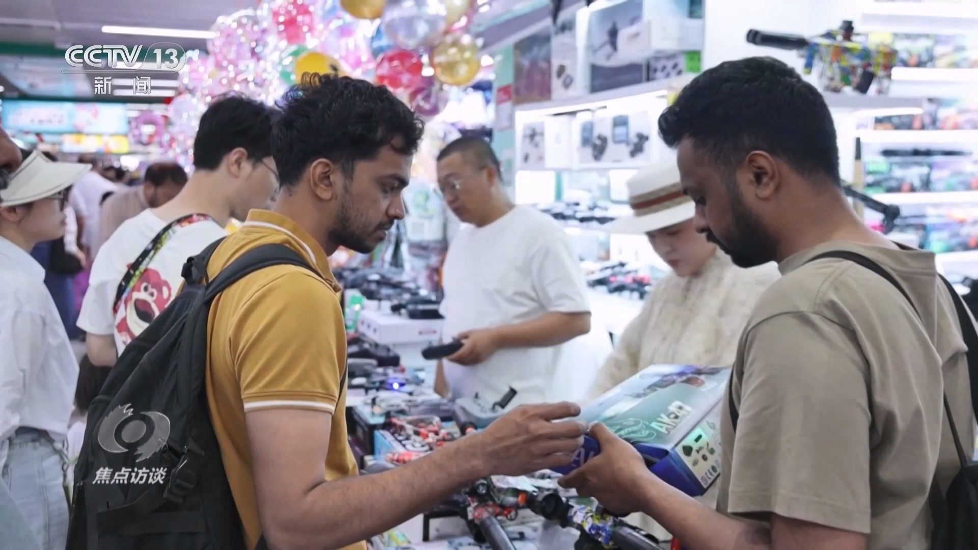 這些洋面孔中,除了定期往返的境外采購商,還有不少是因?yàn)槲覈?guó)近期推出的“240小時(shí)免簽”、離境退稅“即買即退”等政策,選擇“來華游”和“來華購”的。