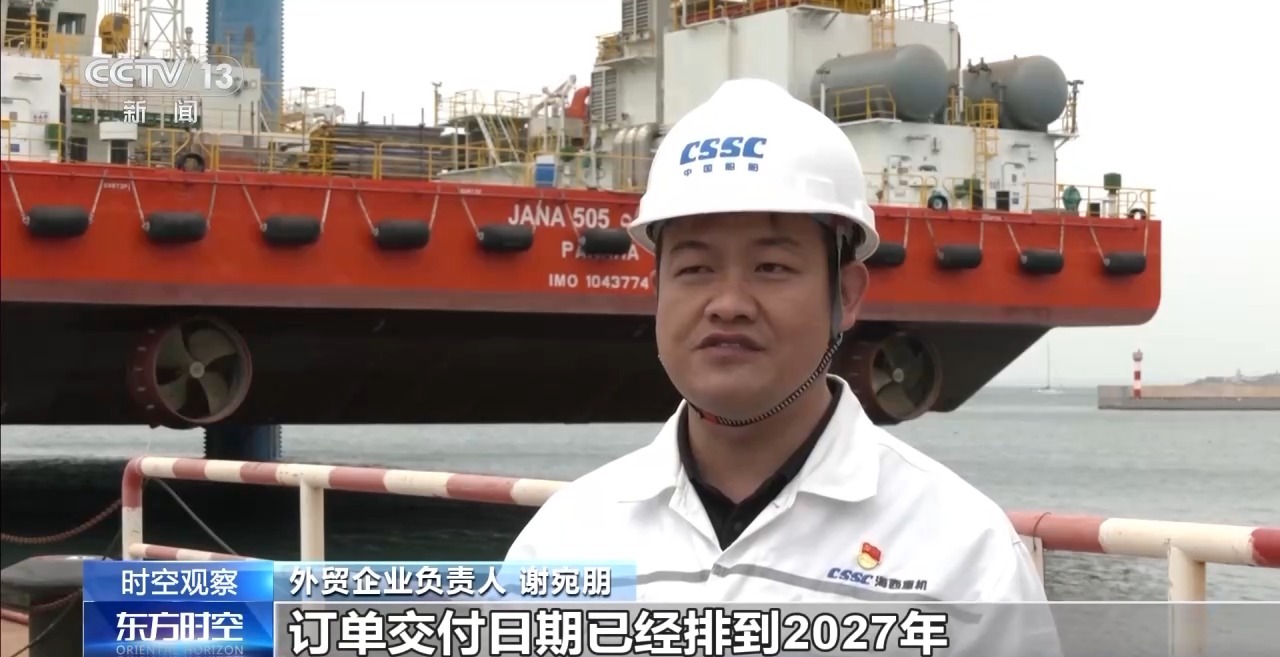外貿(mào)企業(yè)負(fù)責(zé)人 謝宛朋:目前,在建外貿(mào)平臺及港機(jī)設(shè)備40余臺,訂單交付日期已經(jīng)排到2027年。
