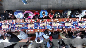 因為電影《哪吒2》而火爆“出圈”的貴陽越界影城,經常舉辦“花式寵粉”的活動。比如在影城門口擺起具有當?shù)靥厣摹敖z娃娃”長桌宴。