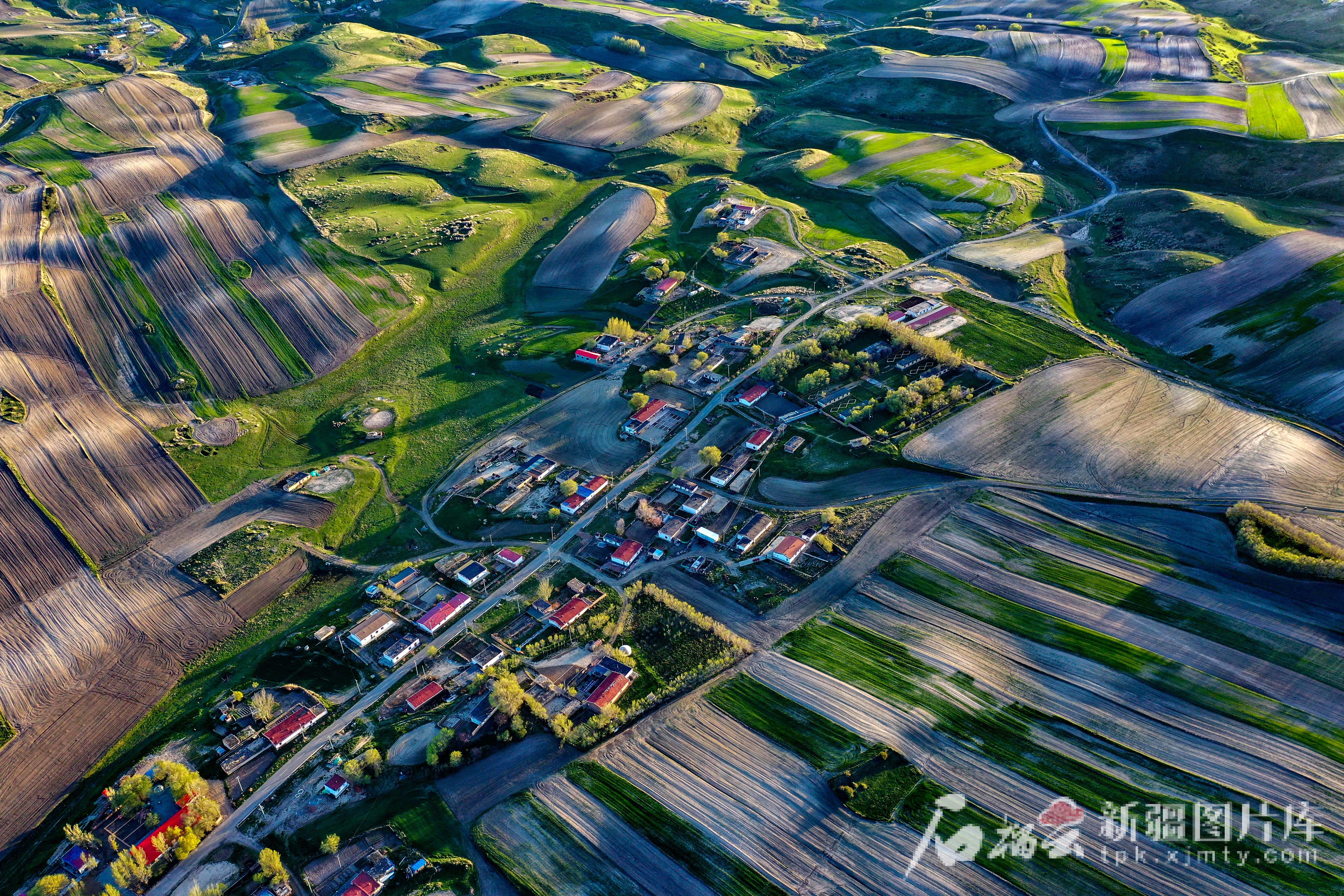 5月8日,在木壘哈薩克自治縣照壁山鄉(xiāng)平頂山村拍攝的萬(wàn)畝旱田景觀。