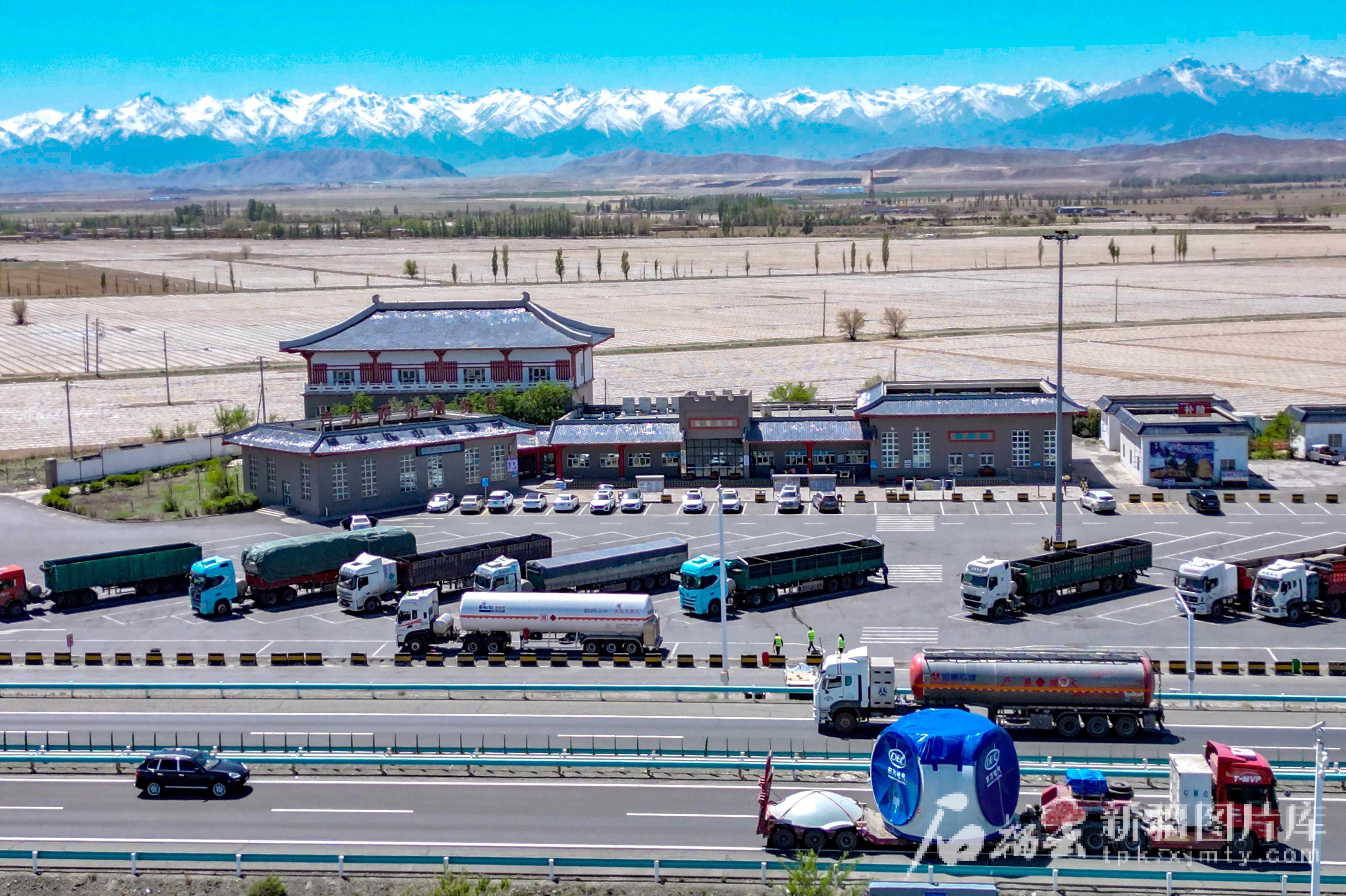 5月9日,京新高速吉木薩爾服務(wù)區(qū),車(chē)輛在服務(wù)區(qū)???。