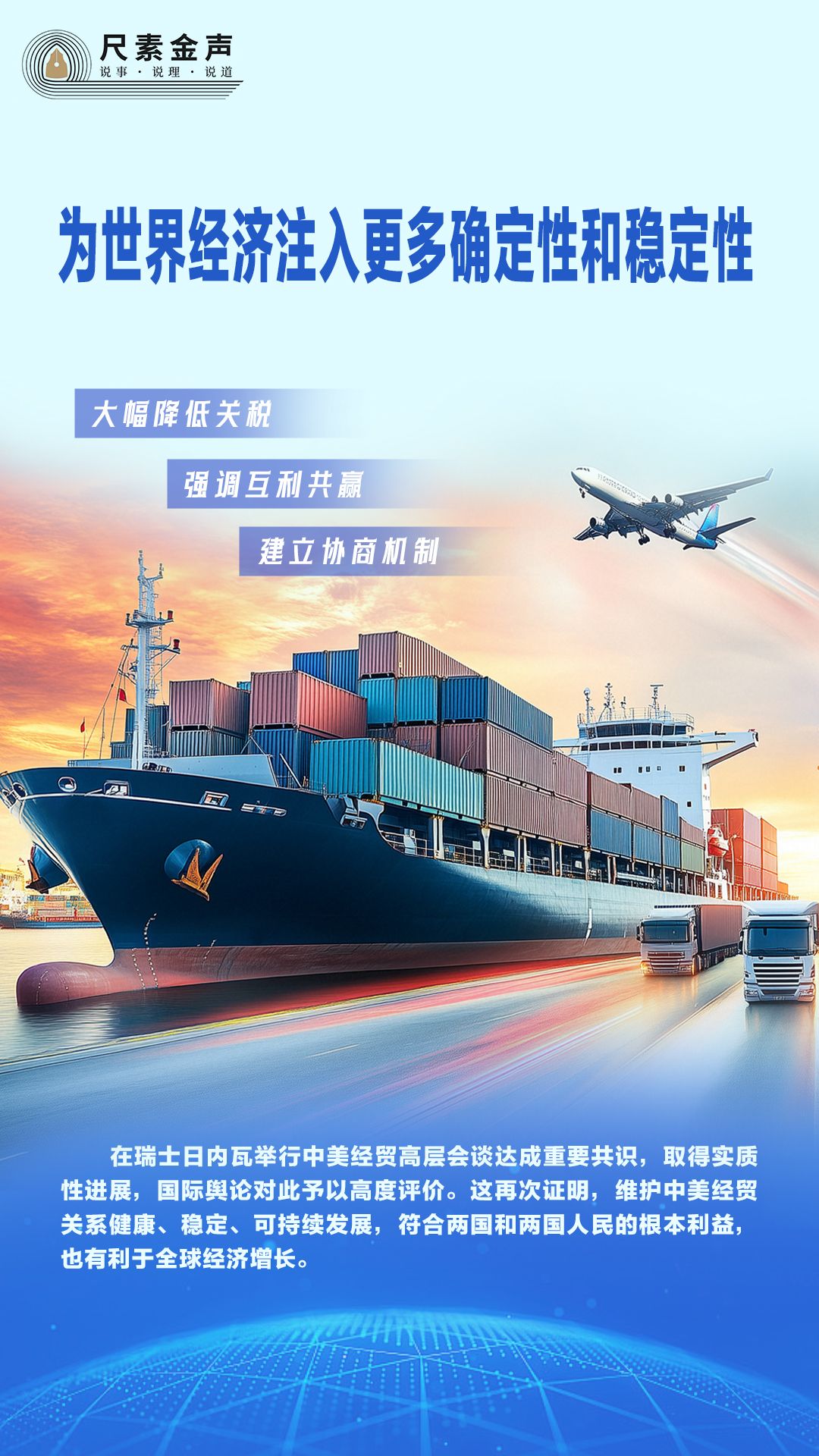 在瑞士日內(nèi)瓦舉行中美經(jīng)貿(mào)高層會(huì)談達(dá)成重要共識(shí),取得實(shí)質(zhì)性進(jìn)展,國際輿論對(duì)此予以高度評(píng)價(jià)。這再次證明,維護(hù)中美經(jīng)貿(mào)關(guān)系健康、穩(wěn)定、可持續(xù)發(fā)展,符合兩國和兩國人民的根本利益,也有利于全球經(jīng)濟(jì)增長。