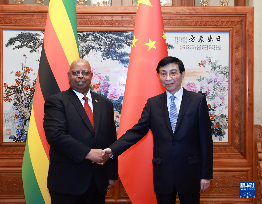 5月14日,中共中央政治局常委、全國(guó)政協(xié)主席王滬寧在北京會(huì)見津巴布韋眾議長(zhǎng)穆登達(dá)。新華社記者 王曄 攝