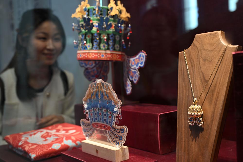 3月25日,觀眾在北京中國(guó)國(guó)家博物館選購(gòu)鳳冠項(xiàng)鏈。新華社記者 金良快 攝