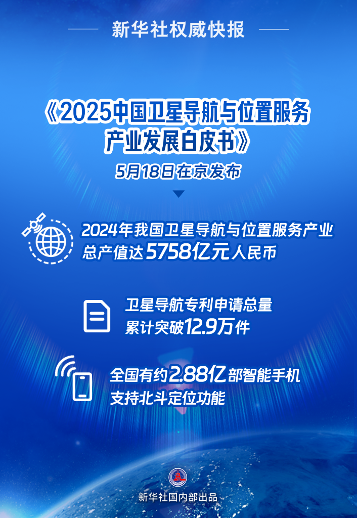 5月18日在京發(fā)布的《2025中國(guó)衛(wèi)星導(dǎo)航與位置服務(wù)產(chǎn)業(yè)發(fā)展白皮書(shū)》顯示,2024年我國(guó)衛(wèi)星導(dǎo)航與位置服務(wù)產(chǎn)業(yè)總產(chǎn)值達(dá)5758億元人民幣,同比增長(zhǎng)7.39%;衛(wèi)星導(dǎo)航專利申請(qǐng)總量累計(jì)突破12.9萬(wàn)件,繼續(xù)保持全球領(lǐng)先……