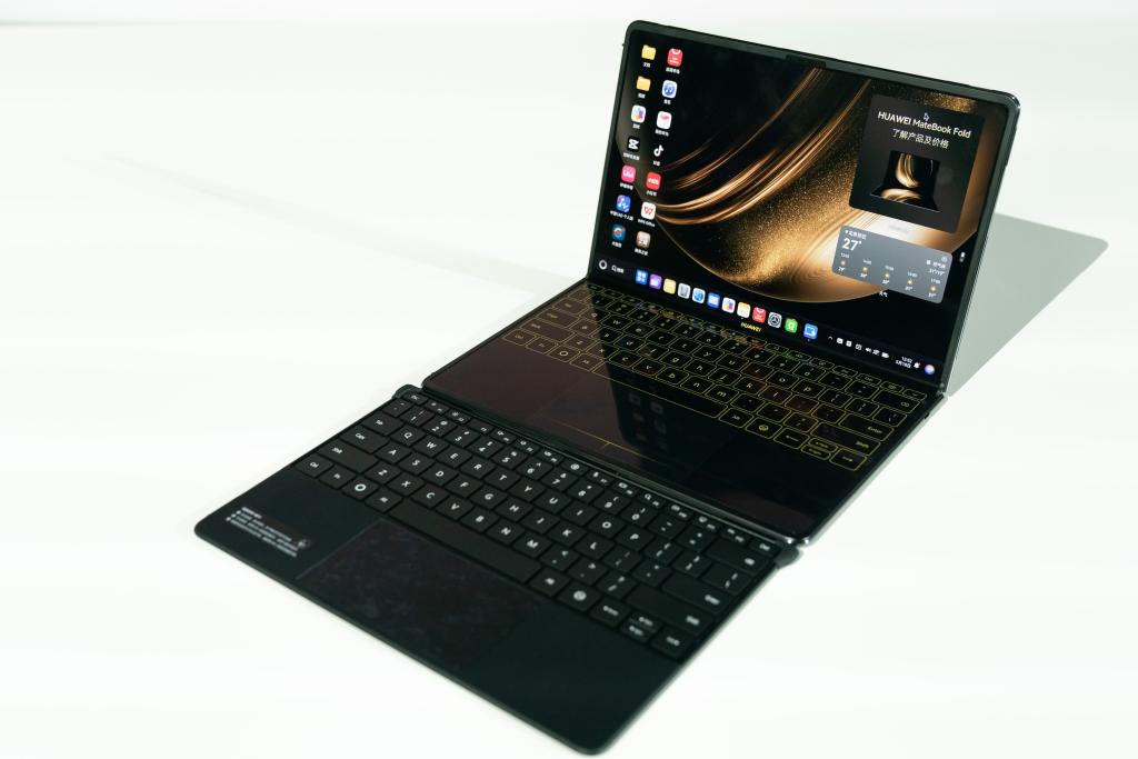 圖為5月19日發(fā)布的HUAWEI MateBook Fold非凡大師實體鍵盤與虛擬鍵盤。新華社記者 胥冰潔 攝
