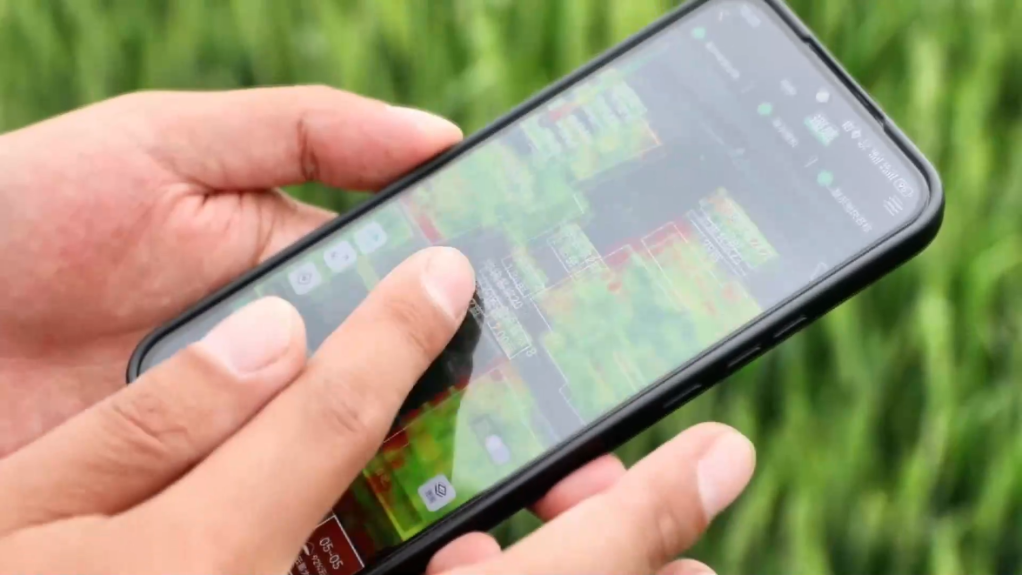 農(nóng)戶通過(guò)AI智慧農(nóng)業(yè)數(shù)字管理平臺(tái)管理麥田。新華社記者 張碩 攝