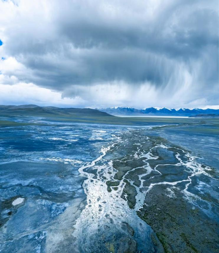 李冬:這張作品是《颶風(fēng)》,拍攝于2022年,采用無人機(jī)拍攝完成創(chuàng)作。當(dāng)時(shí),我和幾個(gè)攝影師朋友同行自駕來到了阿里地區(qū),為探尋獨(dú)特的拍攝視角,我們決定不走常規(guī)路線。通過地圖研究,我們發(fā)現(xiàn)在岡底斯山脈的腹地有一個(gè)地方叫帕龍錯(cuò),雖然能夠在網(wǎng)上搜索到帕龍措,但是鮮有攝影師涉足此地,這就激發(fā)了我們的探索欲,到不到單說,就是想過去看看。