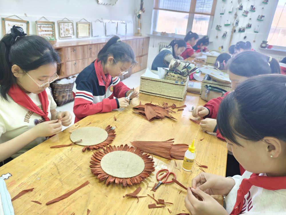 統(tǒng)部小學(xué)有一片十余畝的勞動(dòng)試驗(yàn)田,種滿了玉米。每到秋收時(shí)節(jié),任慧敏就帶著同學(xué)們到田里收集玉米皮,曬干加工成做手工的材料。任慧敏說:“學(xué)校開設(shè)了玉米皮粘貼畫社團(tuán)課程,用農(nóng)村隨處可見的玉米皮制作粘貼畫,很受學(xué)生們歡迎。”
