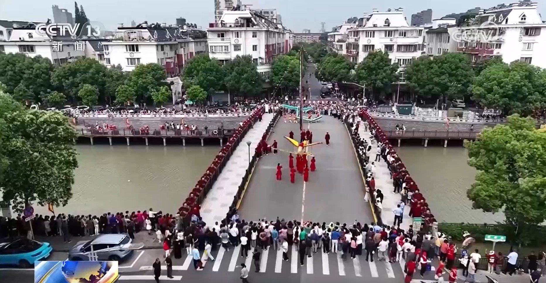現(xiàn)場(chǎng)不僅有龍舟競(jìng)渡,還有魚燈表演、運(yùn)河鼓舞、舞獅表演等民俗文化項(xiàng)目。在大運(yùn)河畔的北塘直街,游客們逛宋韻集市,品端午長(zhǎng)桌宴,體驗(yàn)互動(dòng)游戲,豐富多彩的傳統(tǒng)端午民俗深受大家喜愛。
