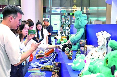 創(chuàng)意滿滿的文創(chuàng)產(chǎn)品帶來時(shí)尚潮流氣息——敦煌研究院的飛天系列絲巾、陜西歷史博物館的唐代仕女盲盒展現(xiàn)地域特色;在甘肅主題館,圓頭圓腦、憨態(tài)可掬的小神獸“蘭小五”成為引人駐足的“明星”;在“湖湘文創(chuàng)”展區(qū),竹片制作的扇子、飛盤、足球等文創(chuàng)產(chǎn)品新意十足;在文創(chuàng)中國(guó)展區(qū),數(shù)十座文化場(chǎng)館帶來了基于文物開發(fā)的文創(chuàng)產(chǎn)品,觀眾紛紛參與文創(chuàng)盲盒、集章打卡等活動(dòng)。