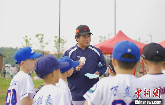 5月25日,在江西省南昌市的棒球場上,臺青吳軍平正在訓練球員。吳敏 攝