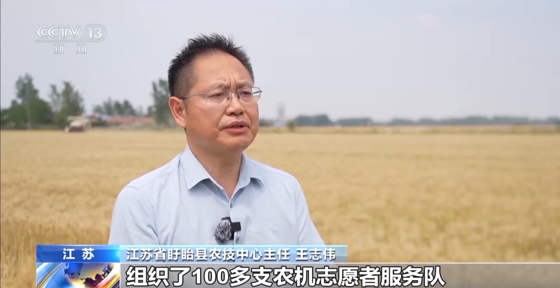 總臺央視記者 田琪永:我現(xiàn)在是在河南省駐馬店市,目前這里的1100多萬畝小麥正大面積集中成熟,當?shù)亟M織了3萬多臺聯(lián)合收割機抓緊搶收,確保小麥收在適收期。