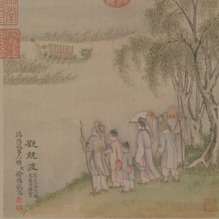 △《觀(guān)競(jìng)渡》,題:“聚眾臨流稱(chēng)為龍舟勝會(huì)?!?/p>