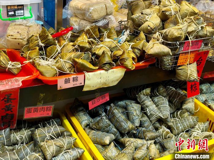 臺(tái)灣端午節(jié)連假期間,臺(tái)北南門(mén)市場(chǎng)的粽子種類豐富。中新社記者 張曉曦 攝