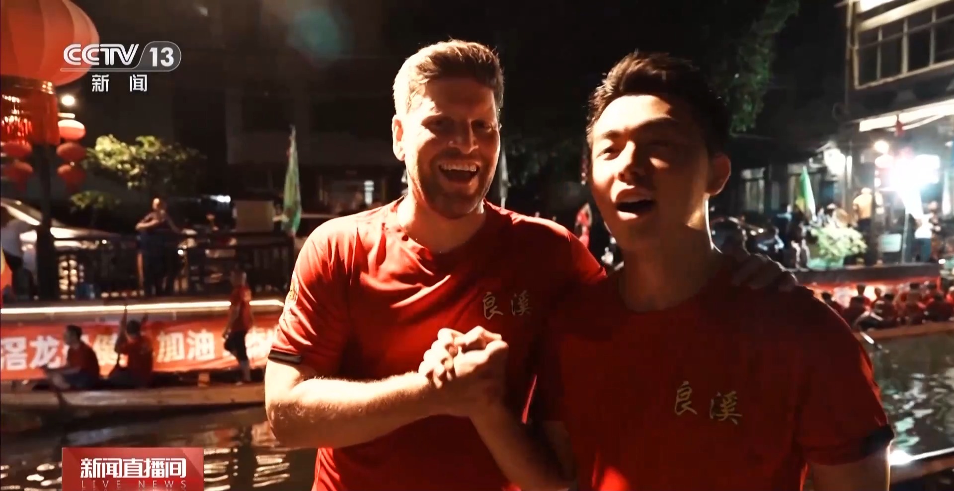 “一條龍船一條心”,這是本杰明對于龍舟精神最深刻的感悟。擅長英語的隊友溫永鋮還帶著他看游龍、洗龍船水、吃龍船飯。隨著交流的不斷深入,本杰明對于龍舟的喜愛,也逐漸從競渡的激情,延伸到對于這項(xiàng)有著數(shù)百年歷史的非遺項(xiàng)目的文化探尋。他感到龍舟比賽不僅是體育競技,更代表著整個村子的同心協(xié)力。