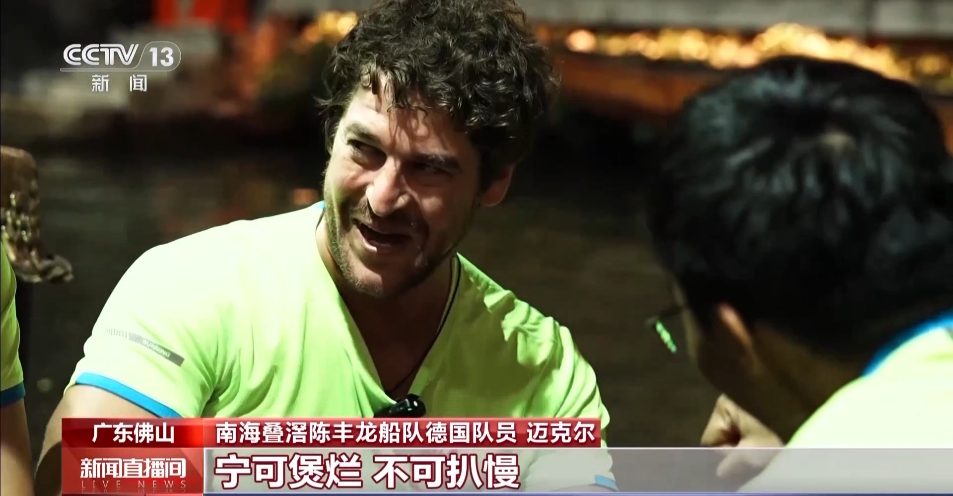 南海疊滘陳豐龍船隊德國隊員 邁克爾:隊員們從一開始就把我當(dāng)作他們中的一員,給了我很多幫助,讓我很快融入隊伍。有次我落水,身體甚至還沒有露出水面,已經(jīng)有兩只手把我抓回船上了。我覺得文化是沒有國界的,我們可以一起擁抱生活中美好的事物。