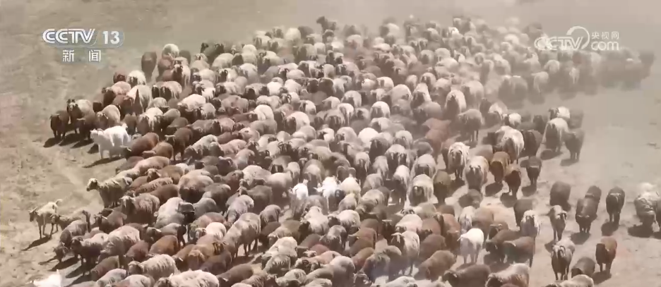 在新疆阿勒泰福??h的沙爾布拉克草原,當?shù)啬撩翊┲恋奶厣?,帶著家當,趕著牛羊,正在進行轉場。今年有45萬頭的牛羊經(jīng)過沙爾布拉克草原千年牧道,轉場到水草豐美的夏牧場。