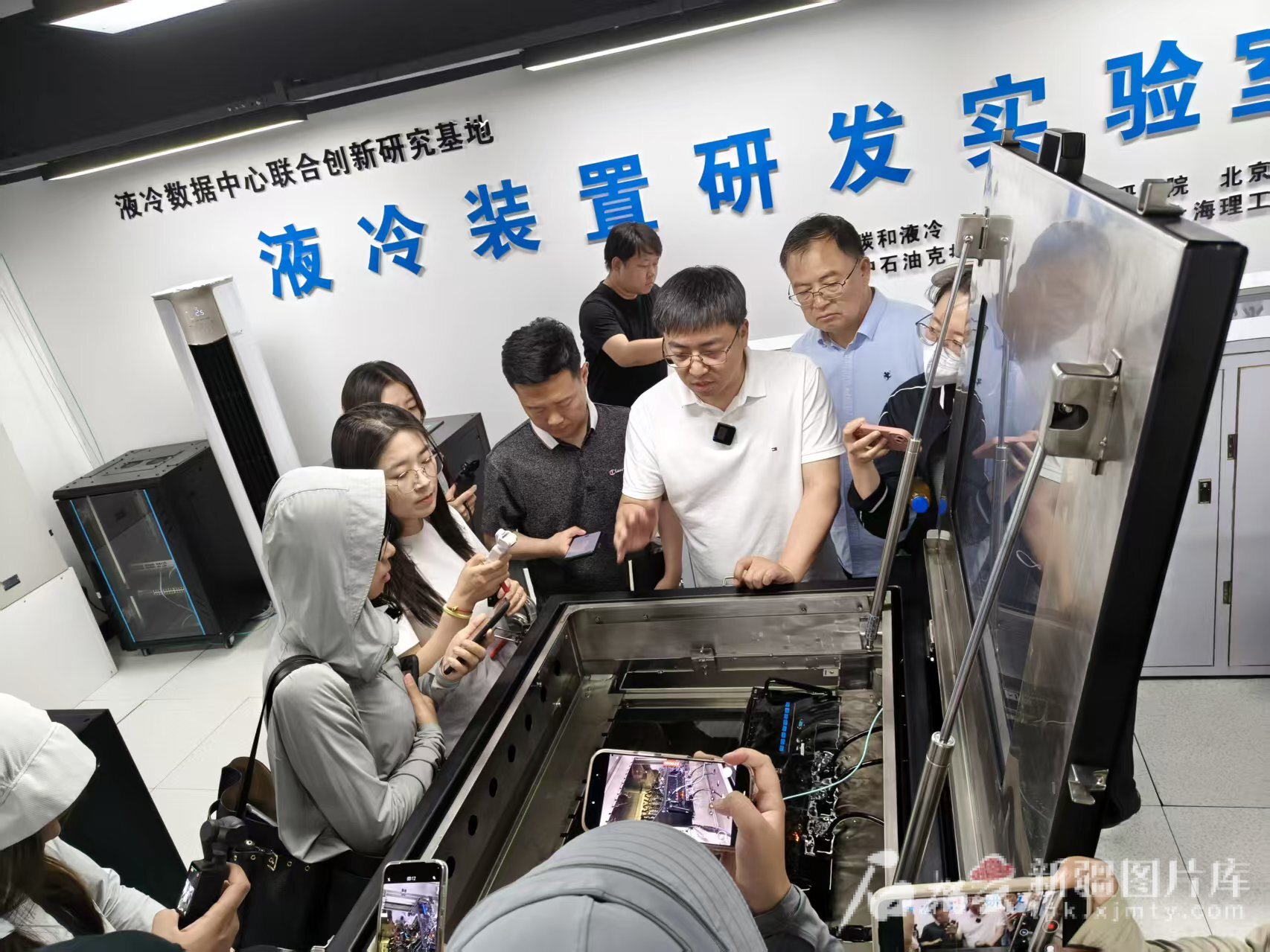 5月16日,在克拉瑪依云計算產(chǎn)業(yè)園區(qū)的碳和液冷數(shù)據(jù)中心,克拉瑪依市發(fā)展和改革委員會黨組成員、副主任鄭直(左一)在向記者介紹克拉瑪依市智算產(chǎn)業(yè)發(fā)展情況。天山網(wǎng)-新疆日報記者 張治立 攝