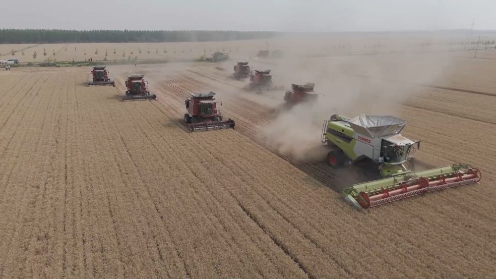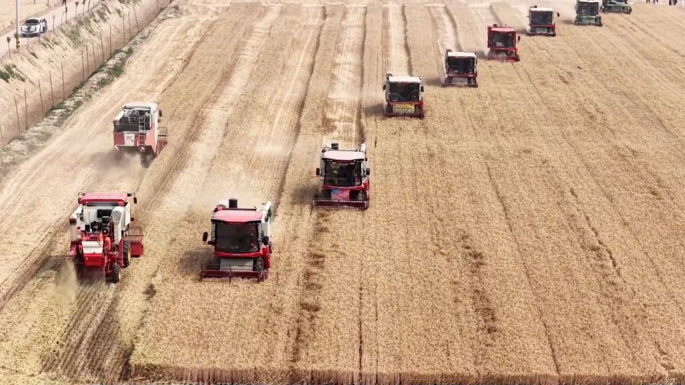 5月29日,位于河南省西華縣的黃泛區(qū)農(nóng)場內(nèi)麥浪滾滾。一望無際的麥田里,大型聯(lián)合收割機(jī)來回穿梭,這也標(biāo)志著黃泛區(qū)農(nóng)場正式迎來今年小麥大面積機(jī)收。