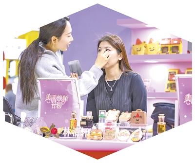 在上海舉辦的中國美容博覽會上,客商親身體驗化妝。