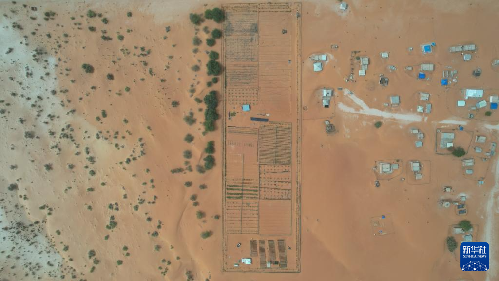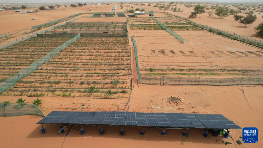 這是5月22日拍攝的位于毛里塔尼亞西部特拉扎區(qū)比爾·巴爾卡村的中非綠色技術公園(無人機照片)。新華社記者 司源 攝