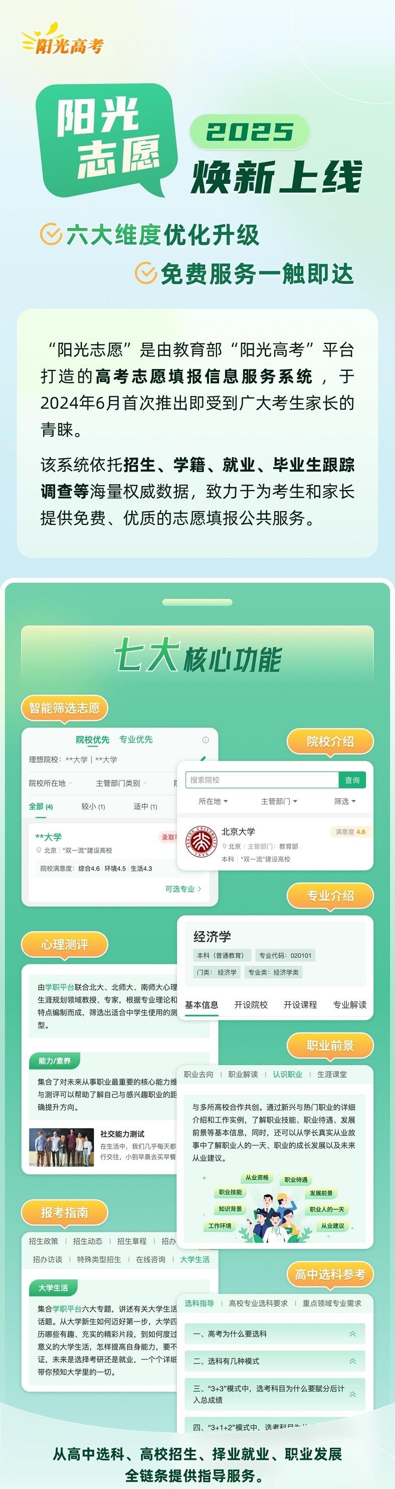 2025年,“陽光志愿”實(shí)現(xiàn)6大維度優(yōu)化升級(jí),更好服務(wù)考生家長(zhǎng)科學(xué)決策。