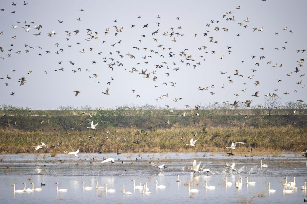 2024年11月12日在上海崇明東灘鳥類國家級自然保護區(qū)拍攝的候鳥。新華社記者 王翔 攝