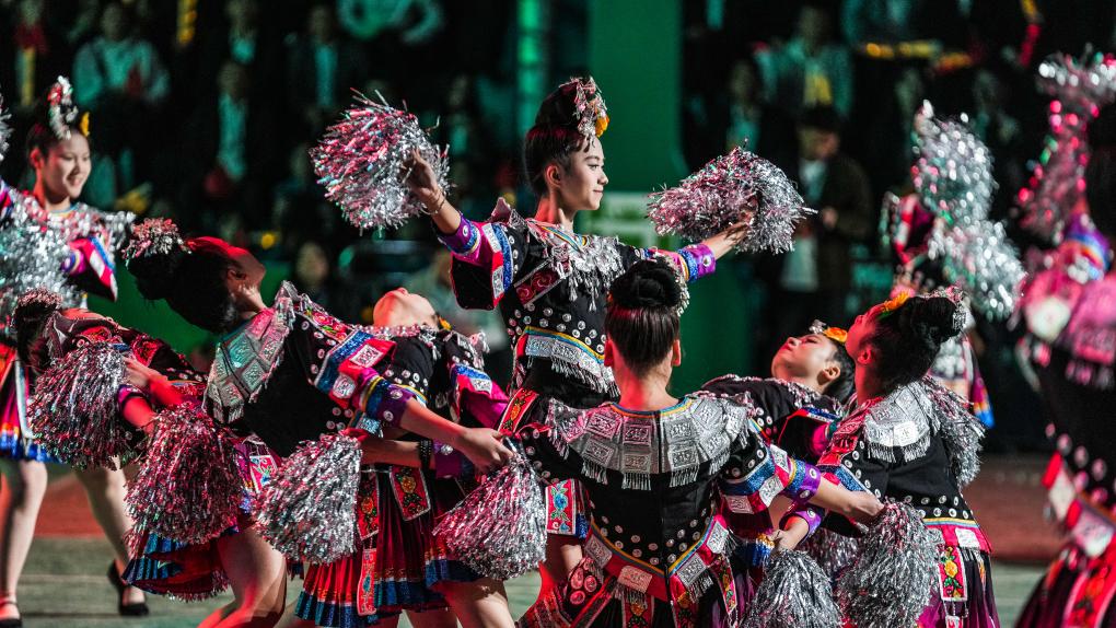 演員在大地流彩·2025年全國和美鄉(xiāng)村籃球大賽(村BA)啟動儀式上進行歌舞表演。新華社記者 陶亮 攝
