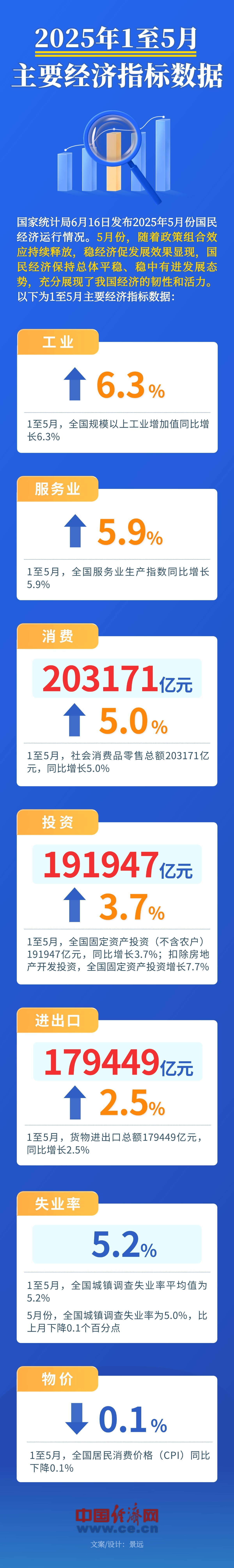 穩(wěn)經(jīng)濟(jì)促發(fā)展效果顯現(xiàn)!一圖速覽1至5月主要經(jīng)濟(jì)指標(biāo)數(shù)據(jù)→