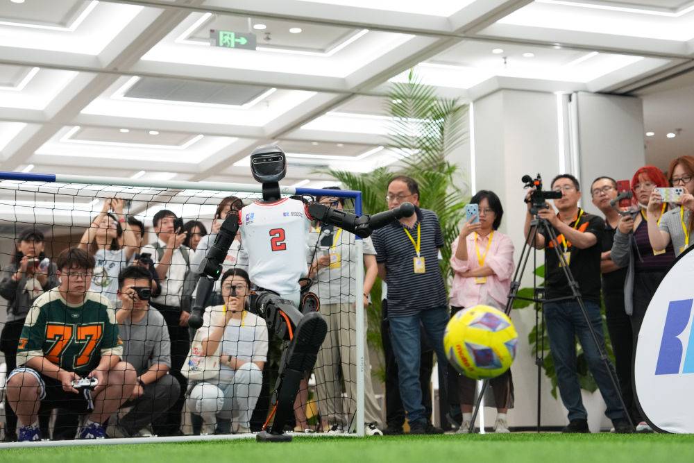 在北京市機器人產(chǎn)業(yè)園(亦莊)的“機器人大世界”前,“活力中國調(diào)研行”記者團最新觀看了一場趣味足球賽,比賽雙方是來自北京加速進化公司的人形機器人。正是這款機器人,讓中國團隊在今年3月的RoboCup機器人世界杯德國公開賽上奪得冠軍。