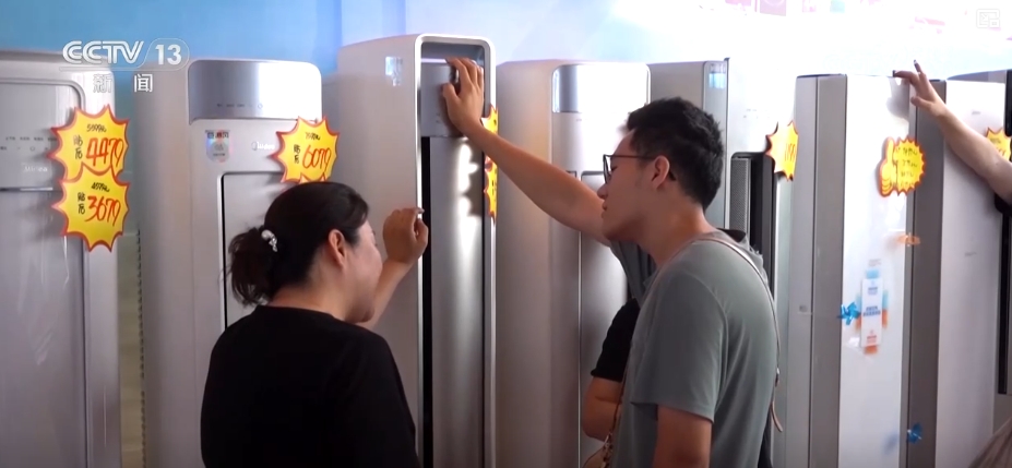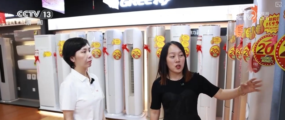 店主介紹,當前消費者“以舊換新”需求旺盛。6月份以來,店內(nèi)銷售量環(huán)比增長了33%,空調(diào)、冰箱等清涼家電成為消費主力。